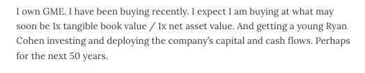 $GME - MICHAEL BURRY POSTS BULLISH PIECE ON GAMESTOP: SUBSTACK