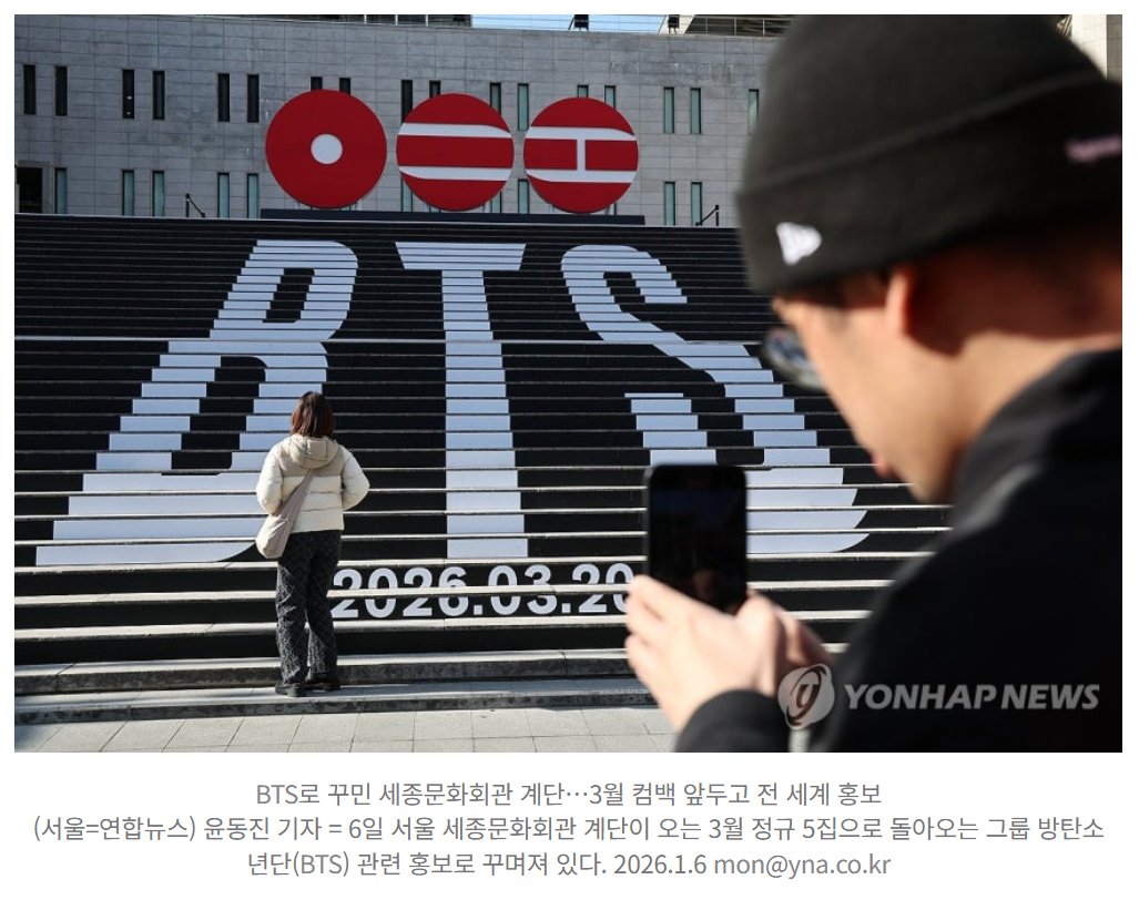 19일 연합뉴스 취재에 따르면 소속사 하이브는 최근 국가유산청에 3월 말 광화문, 경복궁 일대에서 방탄소년단이 출연하는 K팝 공연을 개최하기 위해 장소 사용 허가를 신청했다.