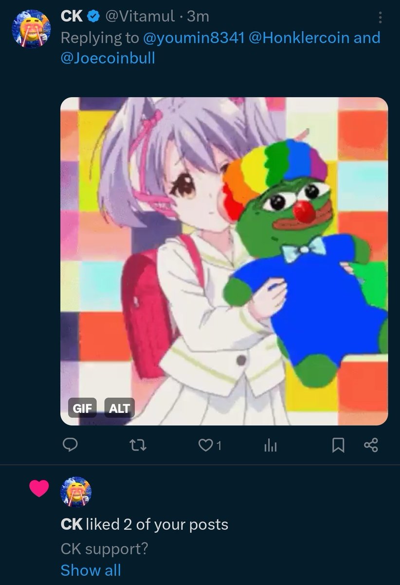 这个是joe的dev关注的CTO 也是经典meme honk joe的市值几千万是eth上的meme CTO的leader也是joe社区的人 CK也关注了 @Honklercoin @Joecoinbull @Vitamul