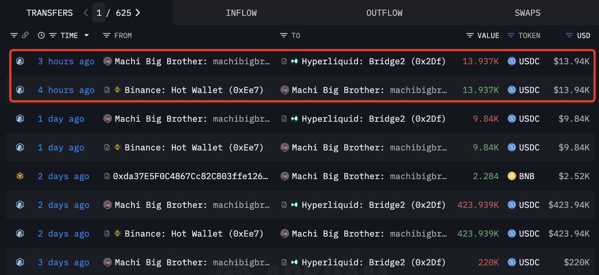 Machi Big Brother(@machibigbrother) just deposited another 220K $USDC into #Hyperliquid, adding more to his $HYPE and $ETH longs.
