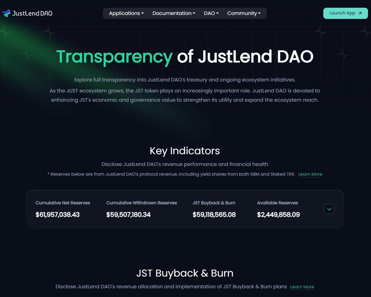 在分析区块链项目的关键指标时,财务透明度始终是我首要关注的方向。JustLend DAO 最近上线的透明账本页面,直接把DAO营收、JST回购销毁的全链路数据做了实时公开,这种彻底透明化的操作,确实为行业树立了新的标准。