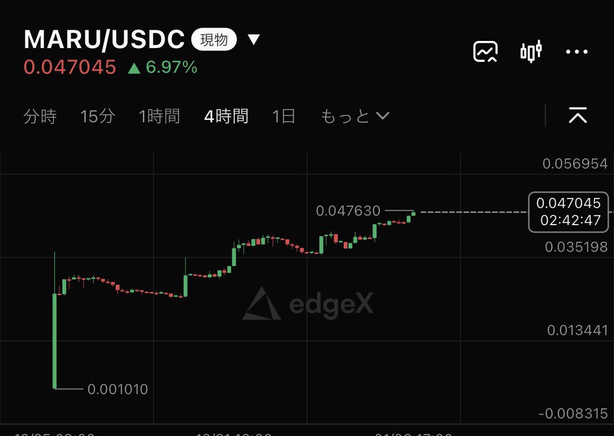 鬼故事,之前 @edgeX_exchange 发的那个meme token $maru 现在已经0.05了… 距离之前发的时候,快翻倍了… edgex好的点是,就算现在还没发币,就先给你空投个meme回血🤣。至少快一个月了,价格还没崩。反正我卖飞了