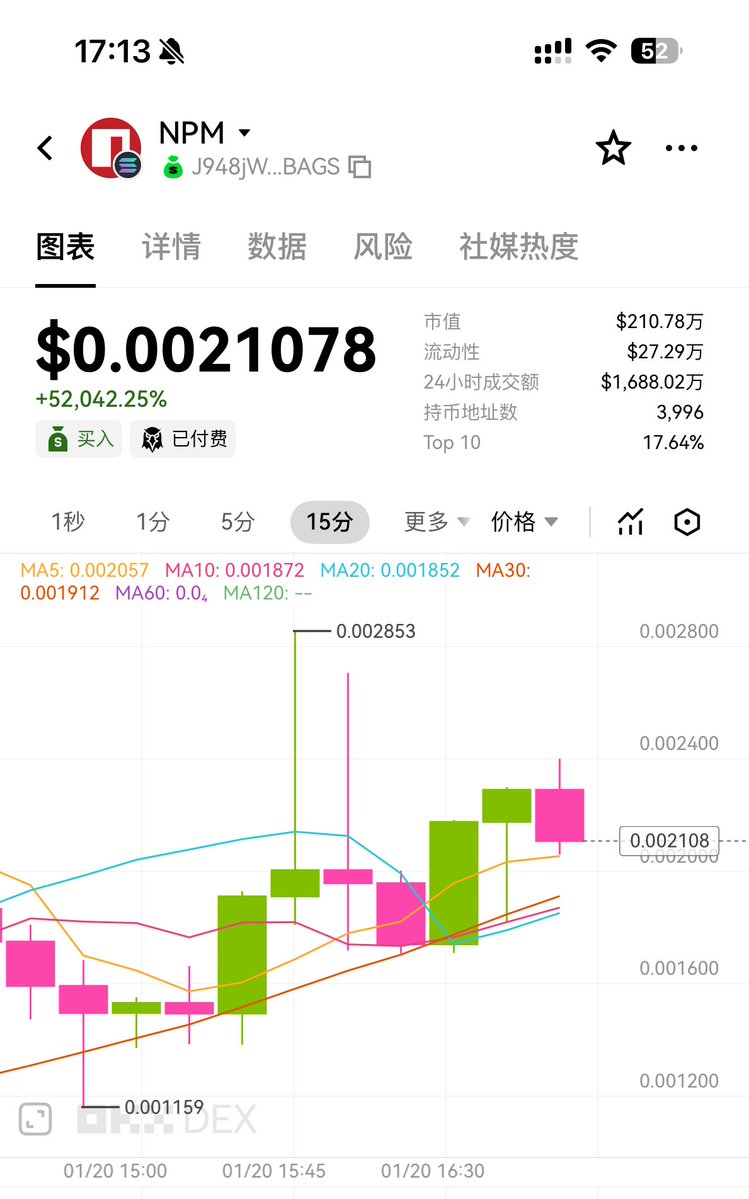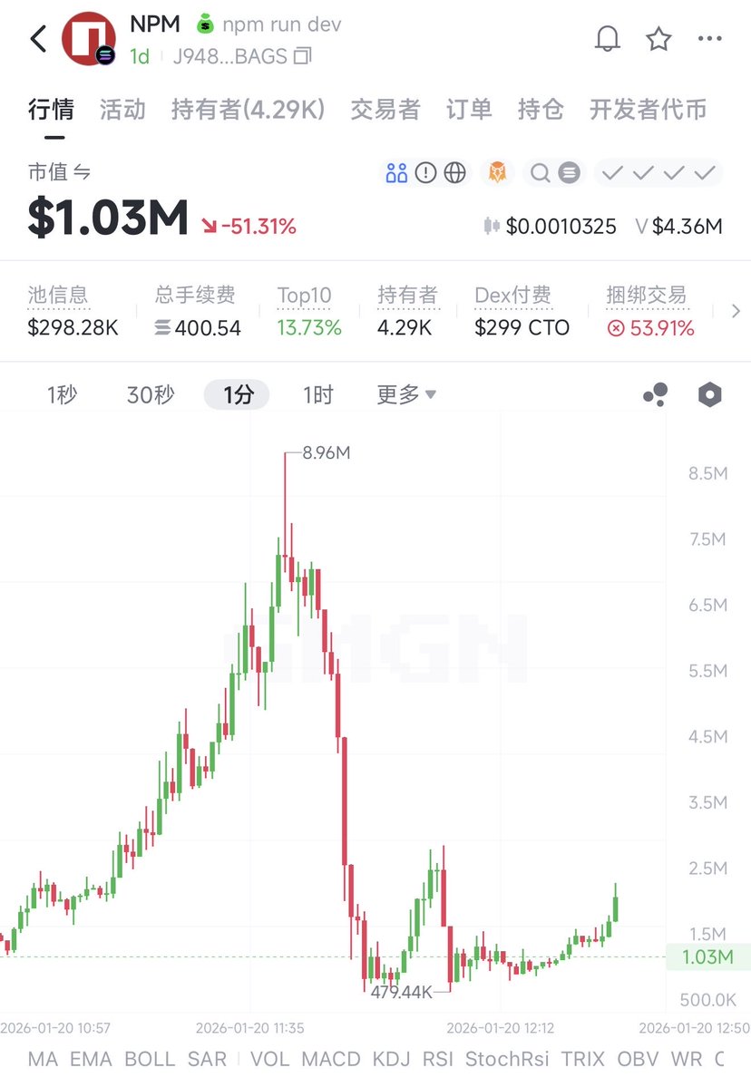 🐶底部拿了 $npm 筹码,0.0013看看拿个1周,要么归零要么起飞!