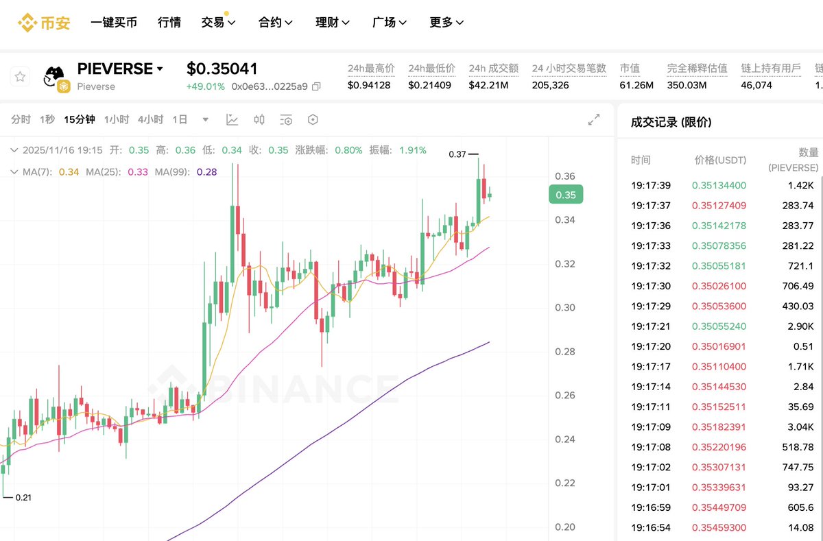有些币或者已经死了,有些币活着就会一直活着。多关注这种回调没有急跌的币种,在当下这种视山寨为垃圾的市场,能走出稳定回调的,说明大概率都没有走完。 $pieverse