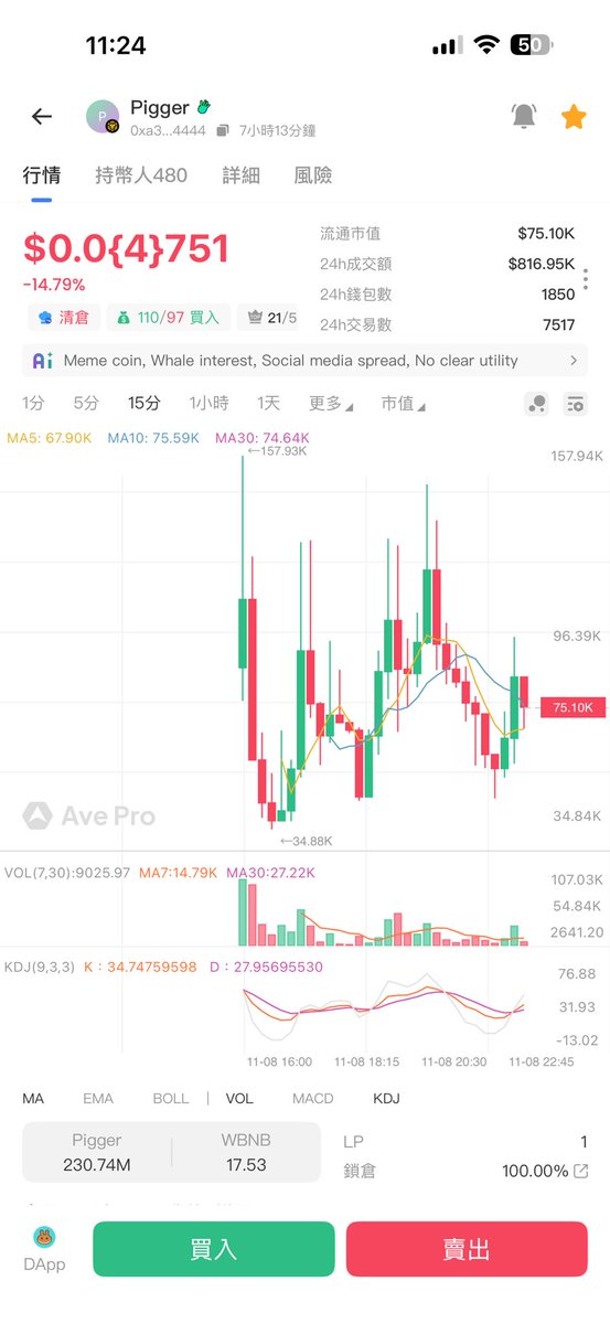 11.9晚复盘 【次新币】 $jbi 0xf377dff78236de14b8afd8820b005c4066934444 14点@binance发推后从170K拉到840K,当前660K $monerochan H5b4iYiZYycr7fmQ1dMj7hdfLGAEPcDH261K4hugpump 叙事:Monero-Chan 专注于提高隐私采用率,并使门罗币成为#1隐私加密货币 价格:基本一路上涨,没有太大的回调,最高8.1M,当前6.5M $pigger DBh9F2wSukCJdZeNkLYe2LMYnCwMyLcnBgeCf4pgpump 叙事:一个走红的网络表情包,@Binance_intern发推并配图 价格:到了新高2.8M,当前2.1M 【老币异动】 $meme rush 0x4444b1e4de34df52cf91e30cc7c0336ee03d7c1b 7号从最低550K拉到2.4M,当前2M $short 0xacee924ec7fceb684369519e2d135db2eaabe192 cz于17:06将99.9%的代币销毁,市值从121M拉到最高3.5B,当前1.4B $avici BANKJmvhT8tiJRsBSS1n2HryMBPvT5Ze4HU95DUAmeta 到达新高43M,当前41.3M $priceless 0x7d03759e5b41e36899833cb2e008455d69a24444 昨天从600K拉到最高4.6M,当前3.8M,历史最高市值39.8M