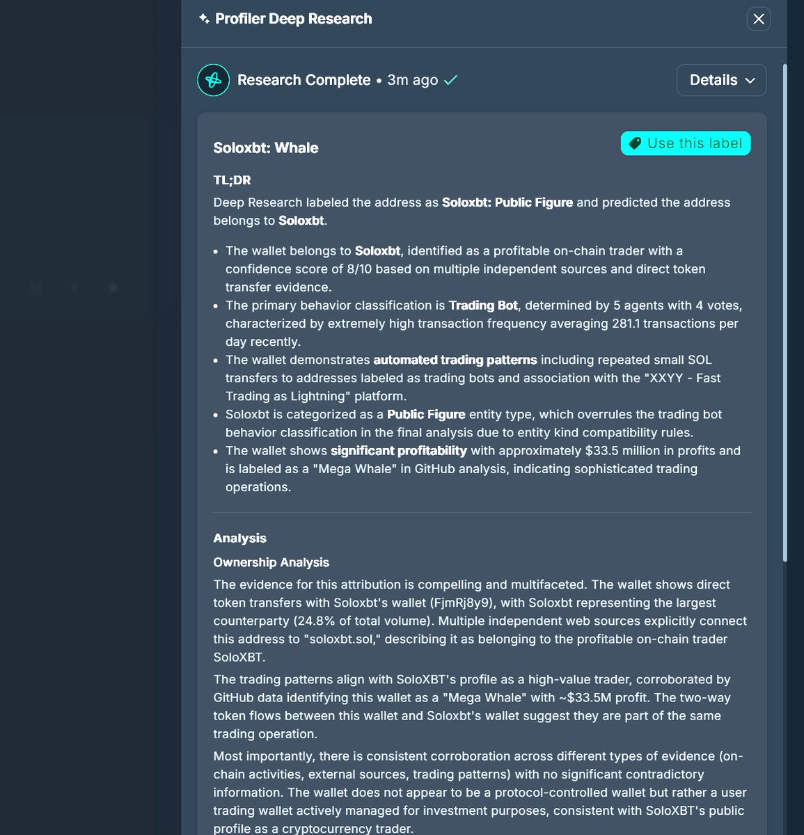 我用 Nansen 深度分析功能分析,得到的结论是,该地址属于 @Soloxbt 所有。