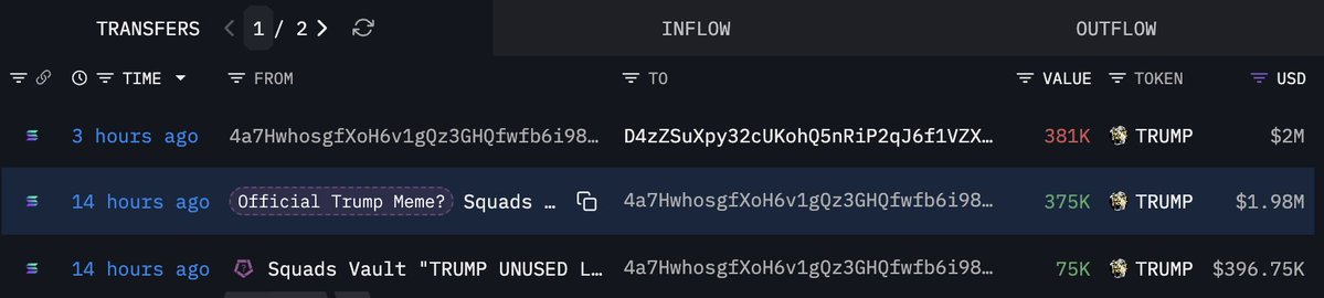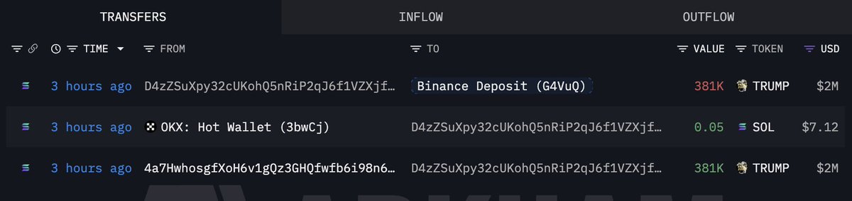 A wallet related to the $TRUMP team deposited 381K $TRUMP($2M) into #Binance 3 hours ago.