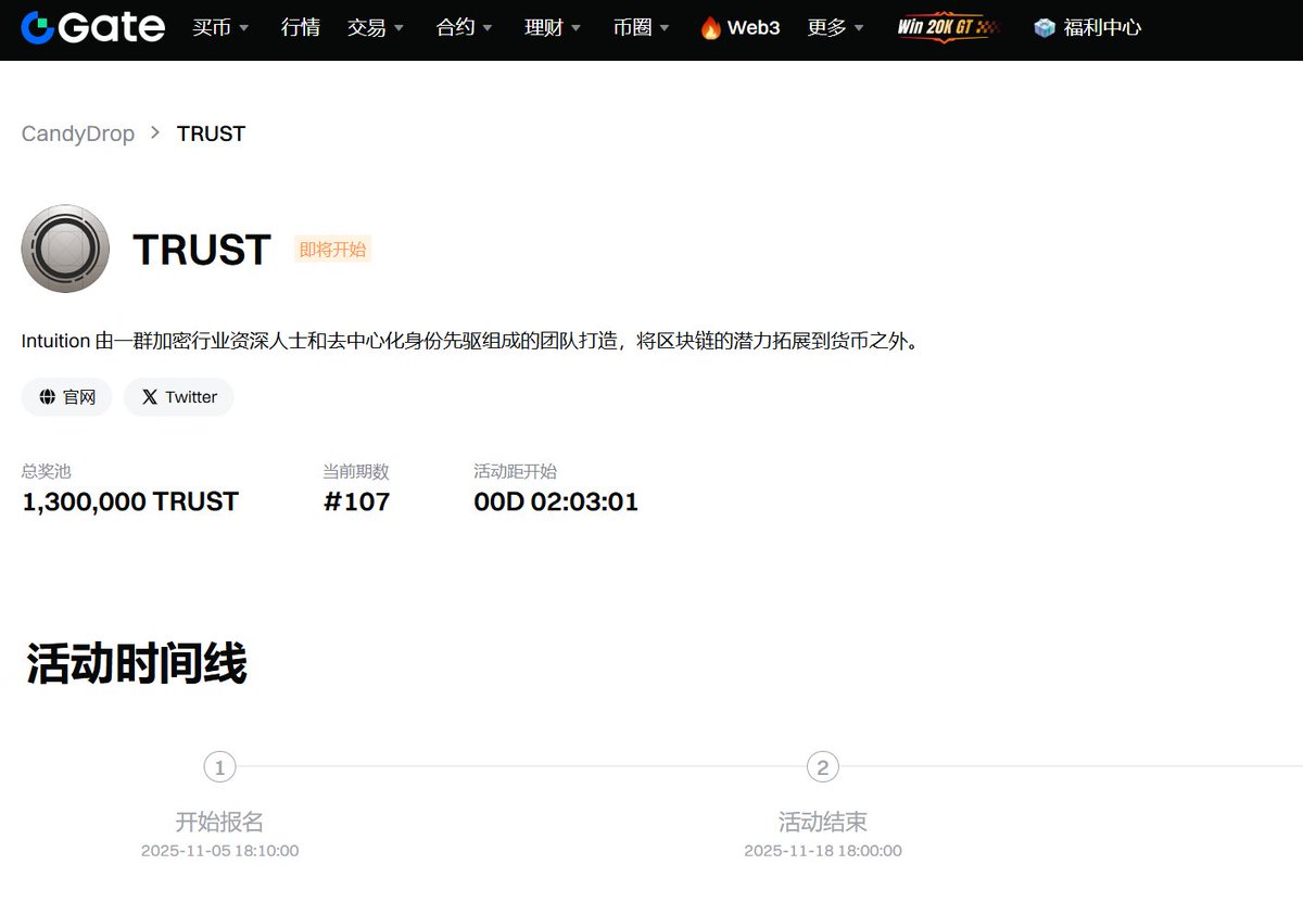 很多人看到 Gate 上线 $TRUST 的 CandyDrop,都只想着空投有多少。但其实这波更聪明的玩法,是用参与换信任、用交易积声誉。