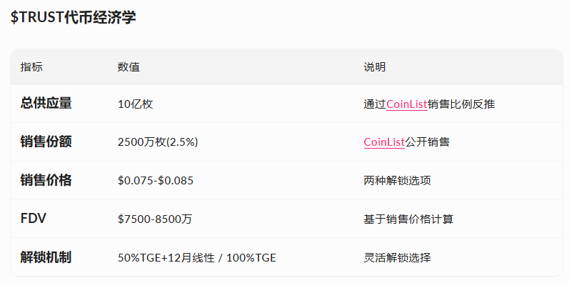说下 $TRUST 打新估值