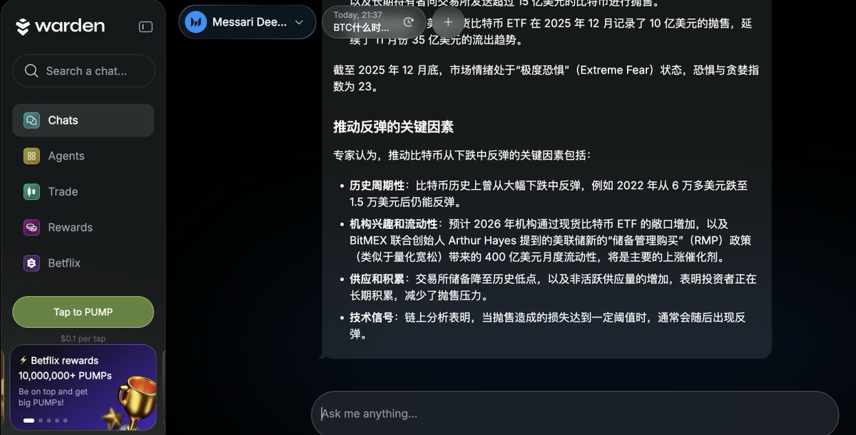 #WardenProtocol 自应用上线以来,从最初有限的功能已经拓展到交易、分析、查询等功能丰富的 AI 代理综合平台。