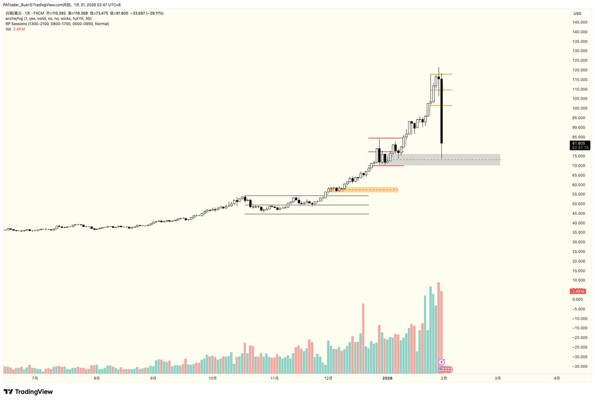 今晚的 $BTC 跟昨天的 $XAG 和 $XAU 一样,都是清算。