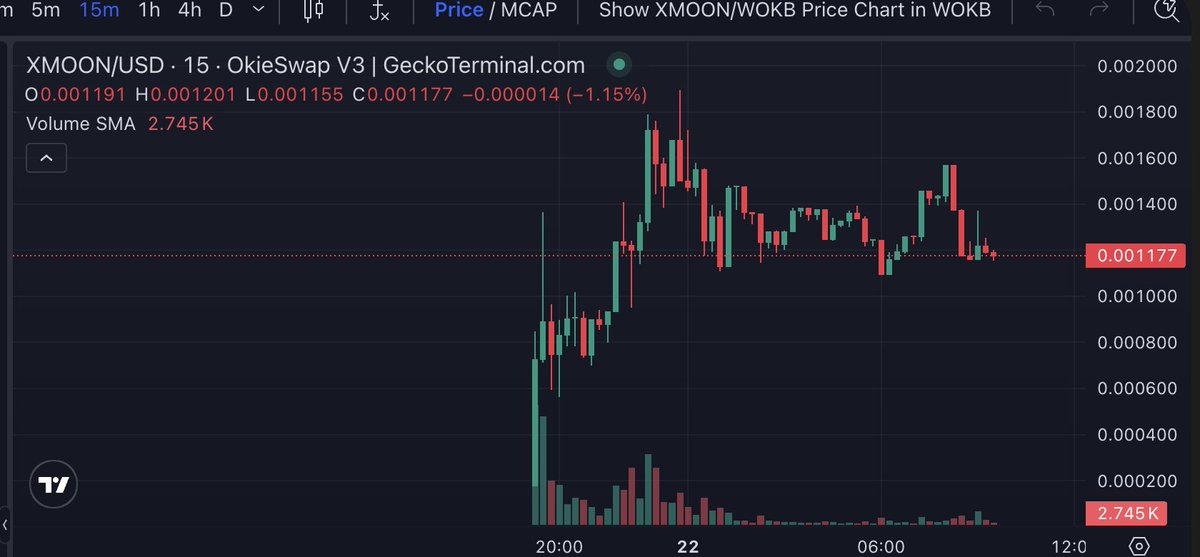 今天平台新出一个币 $XMOON ,原班人马打造,800 OKB全部加底池,发射之后走得很稳。