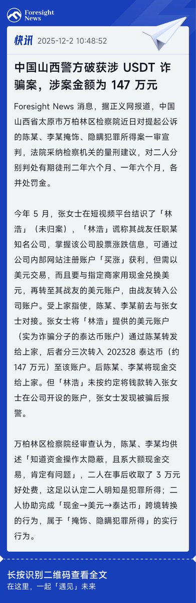 你的现金给了线下中间人,而USDT瞬间就到了骗子手里的加密钱包。