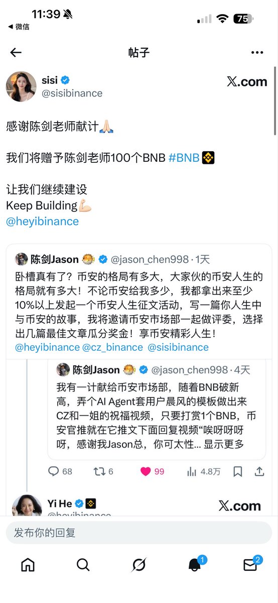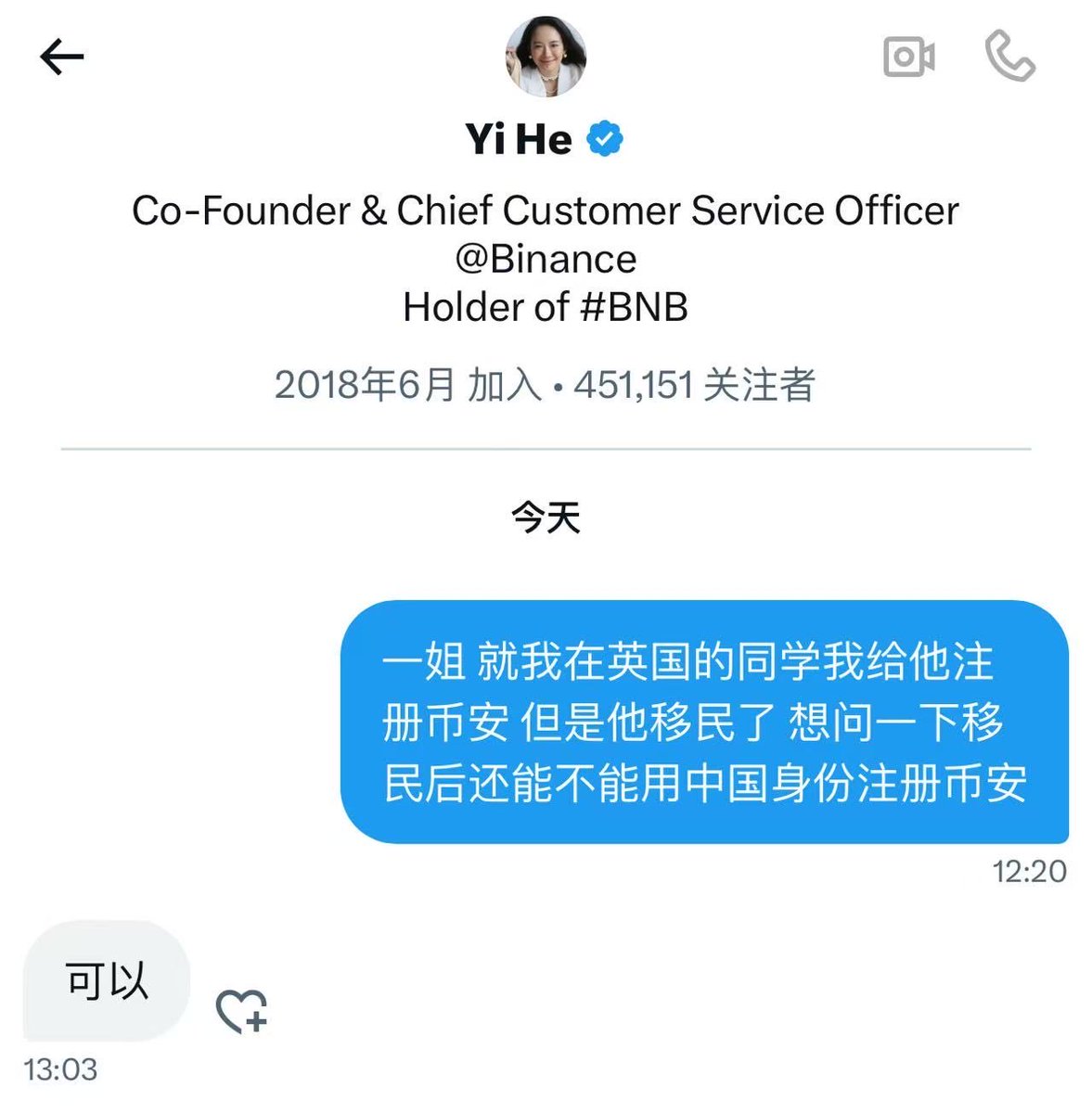 然后还有就是感谢一姐@heyibinance 在百忙之中还愿意回答我这种小卡拉咪的一些问题 这说明币安很尊重每一位用户 哪怕只是一个小散