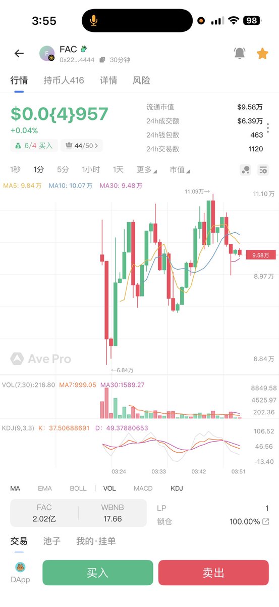 bsc @BNBCHAIN 上第一個 x402 協議代幣 $PENG ,熊貓@Cryptopanda1418 發群裡大概是 400k 左右,目前已翻倍,項目方設置了每三分鐘自動銷燬機制,感覺還是有點意思。