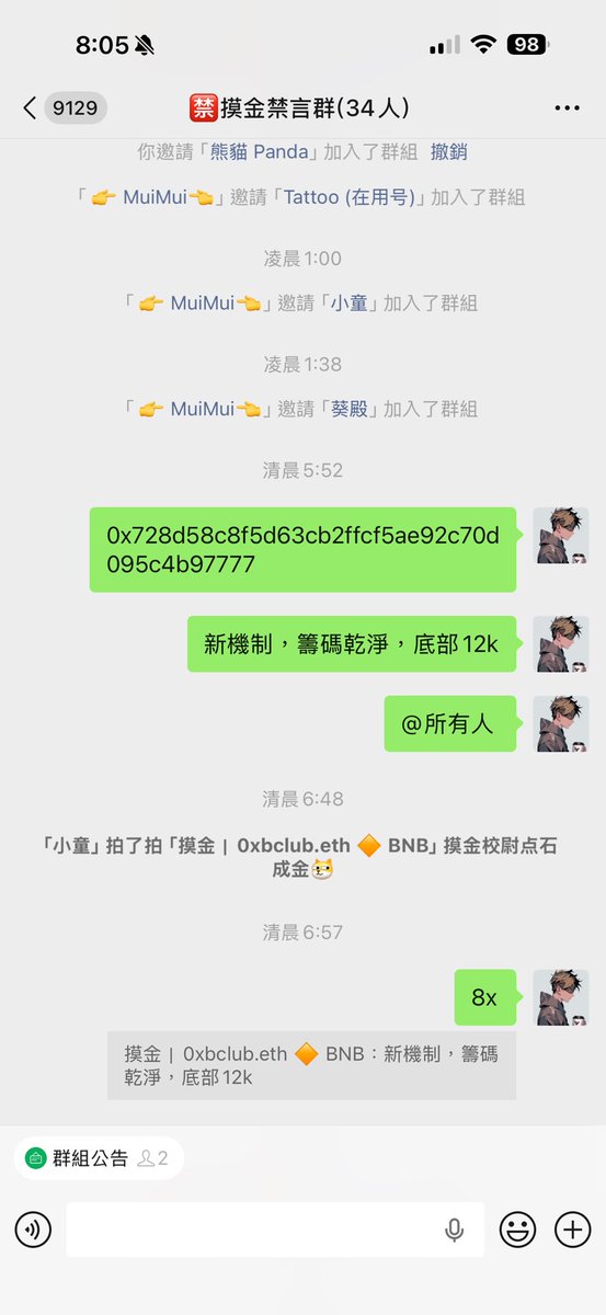 上午那個 #零虧損 最高拉到26x的DEV又發了一個新的CA,舊的稅是3%,5分鐘分紅一次,導致後面會形成一個瓶頸不夠補貼虧損用戶,新的CA是5%的稅,需持有100分鐘才有資格獲得補貼,變相鼓勵持有。