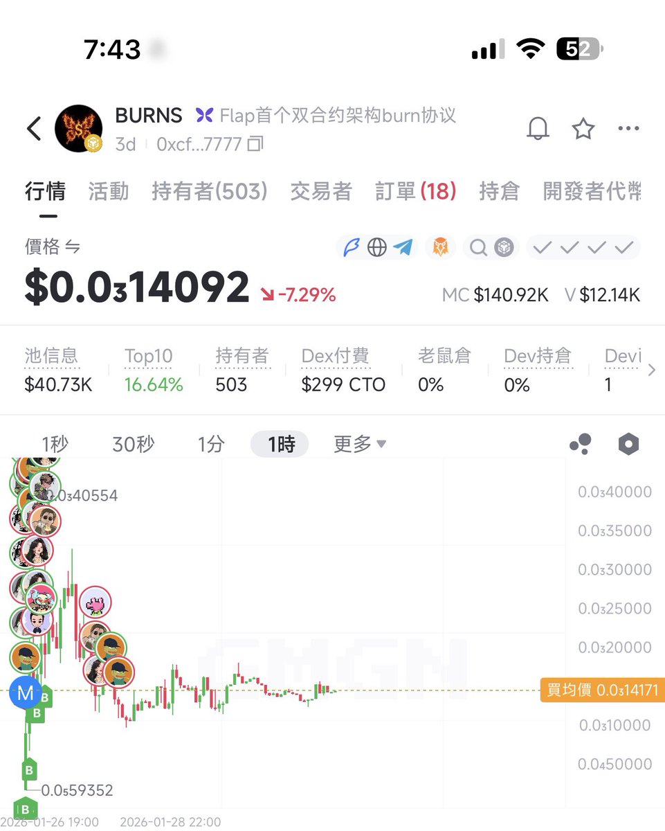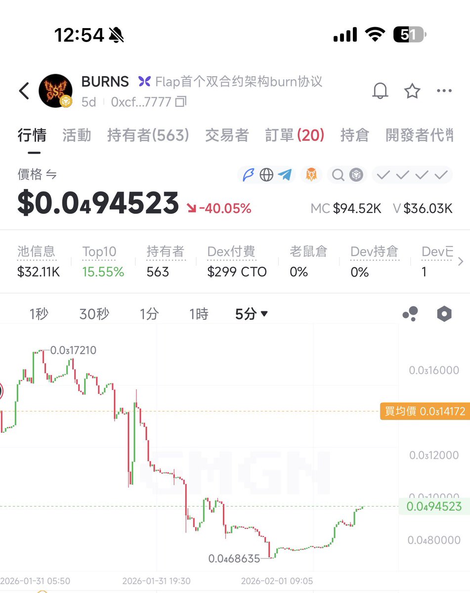 DEV 是個老外,技術很硬,心裡是真的想做一個比較長遠、偉大的項目。但他上一個項目(就是之前的 burn)因為預言機出問題,後面開不了獎,搞得整個卡死。當時他還找過我幫忙去聯繫 @flapdotsh 蝴蝶官方問問能不能挽救,結果官方回說他們也沒權限改,就這麼涼了。最後 DEV 只能咬牙放棄,重頭再來,才造就了現在這個 burns。
