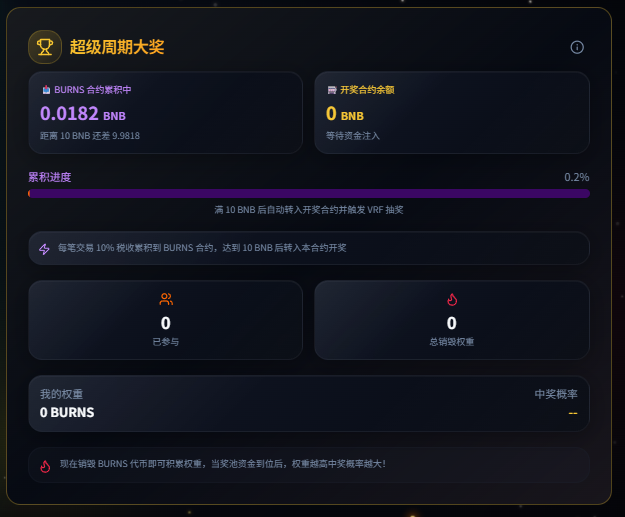 2️⃣ VRF 抽奖:累计销毁达标,参与链上抽奖(20% 税收)