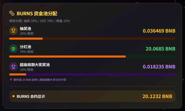 1️⃣ 销毁分红:持有 BURNS 凭证,别人销毁你分红(70% 税收)