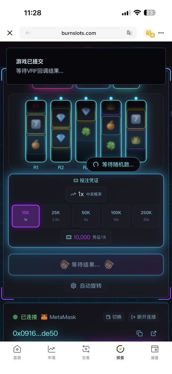 這意味著現在參與銷毀(Burn),不僅能拿一個永久分紅憑證,還能同時獲得兩個不同維度的抽獎機會。盈虧比非常高。