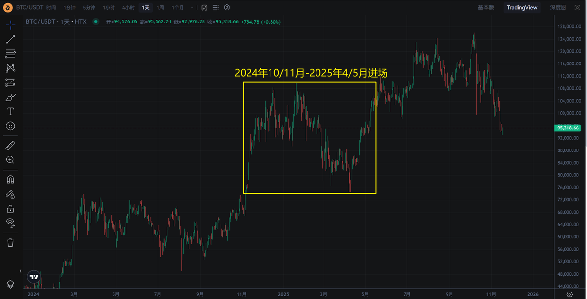 推算一下,这帮持币6个月-12个月的投资者进场时间在2024年10/11月-2025年4/5月👇