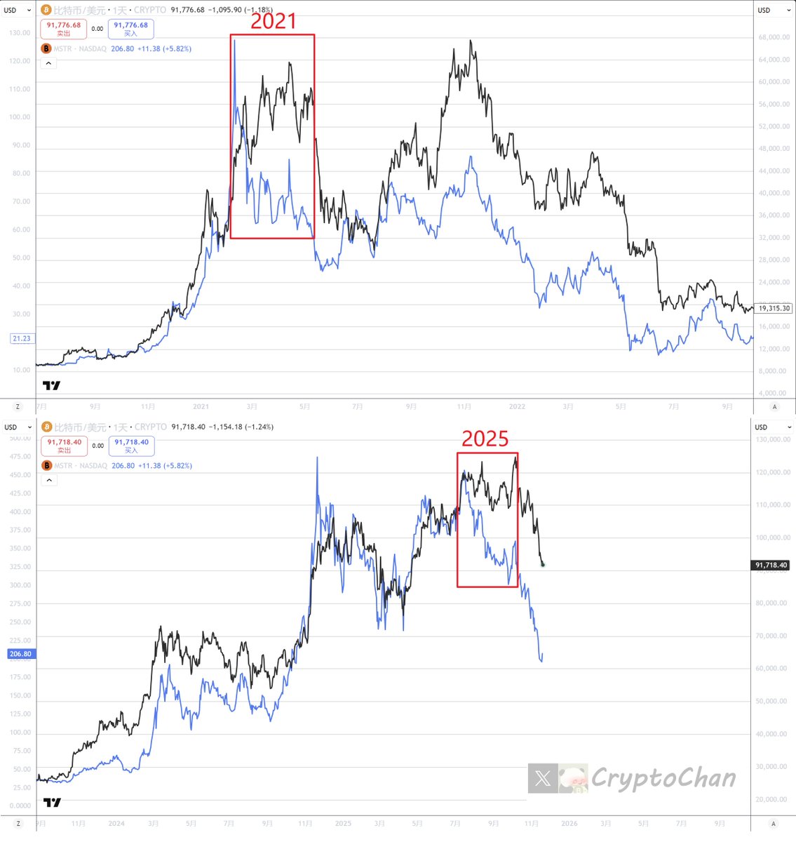 其次,21年$69000后的大熊市跟当时美股及全球金融市场的下行有强相关性,当时的情形不能生搬硬套至当前