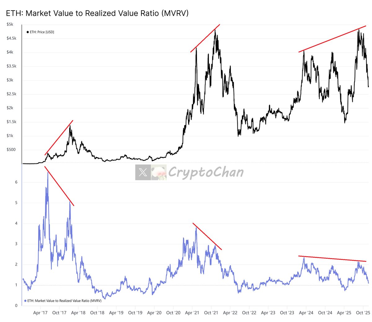 • 周期性趋势:历史数据显示,MVRV 在比特币的牛熊周期中具有一定的预测能力