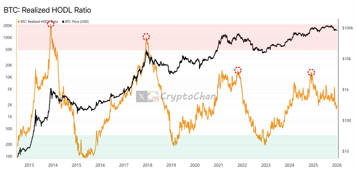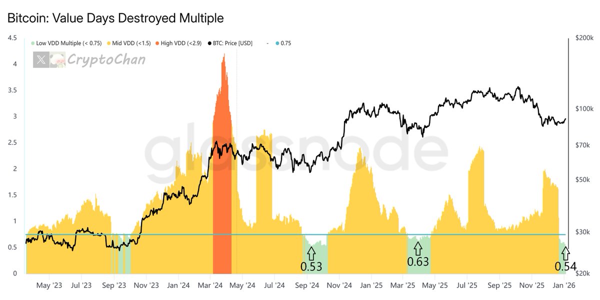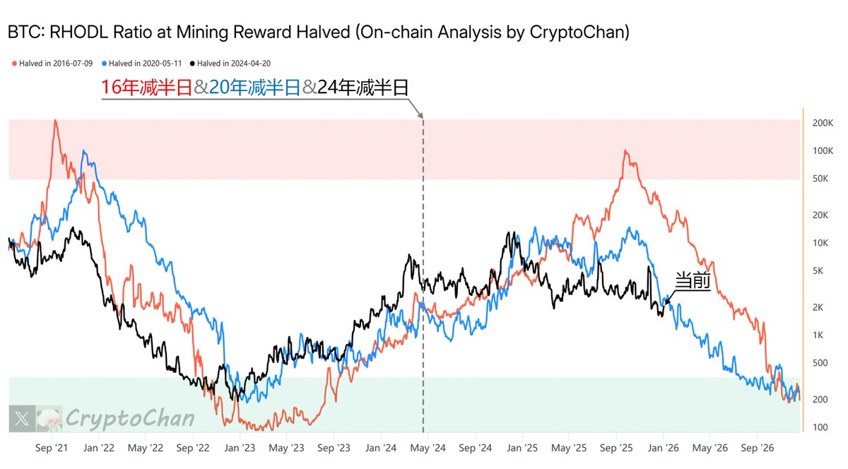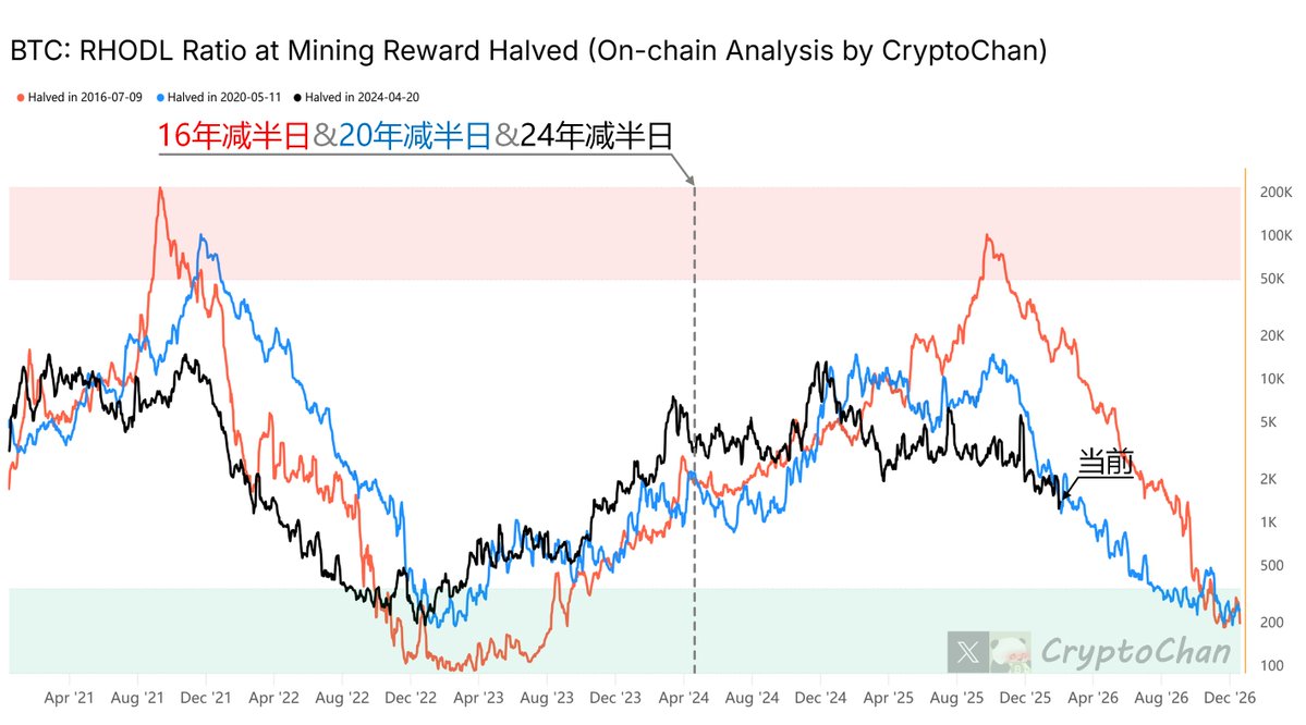 比率 < 1:表示短期持有者的平均成本低于调整后长期持有者。这常见于熊市或市场底部,近期进入者以较低价格买入,而长期持有者的成本基础较高(反映他们持有穿越周期)。这往往是投降的信号,暗示弱手已出清,市场可能转向复苏或牛市起点