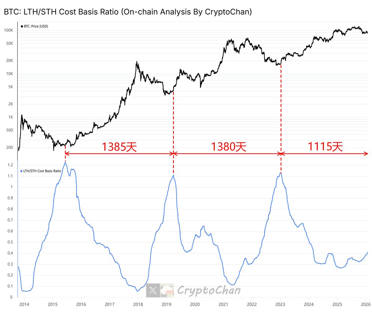 比率 > 1:表示短期持有者的平均成本高于调整后长期持有者。这通常发生在牛市中,近期进入者以较高价格买入,而长期持有者的成本基础较低(即使排除极长期筹码)。这暗示市场情绪乐观、新资金流入强劲,但也可能预示投机过热或潜在回调