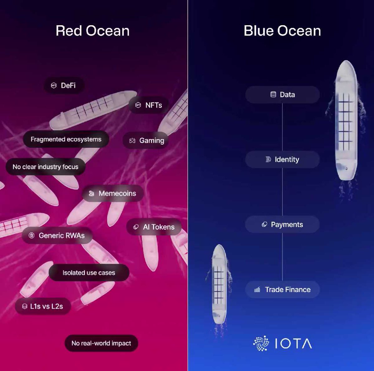 IOTA 并没有去卷 Memecoin 这种零和博弈,而是通过解决上述痛点,直接切入了这个被传统科技巨头忽视的、极具统治力的空白领域。