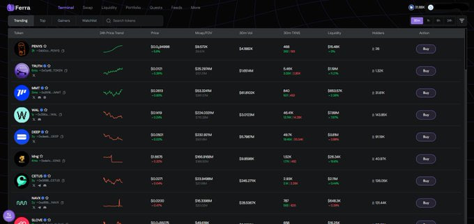@ferra_protocol 这一层,其实更像是顺势而为。既然大家本来就要看项目、找线索、做判断,那干脆别拆散,让信息和交易待在同一个地方。UI 顺不顺,在这里就变得特别重要了。用着不累,很多行为自然就发生了。