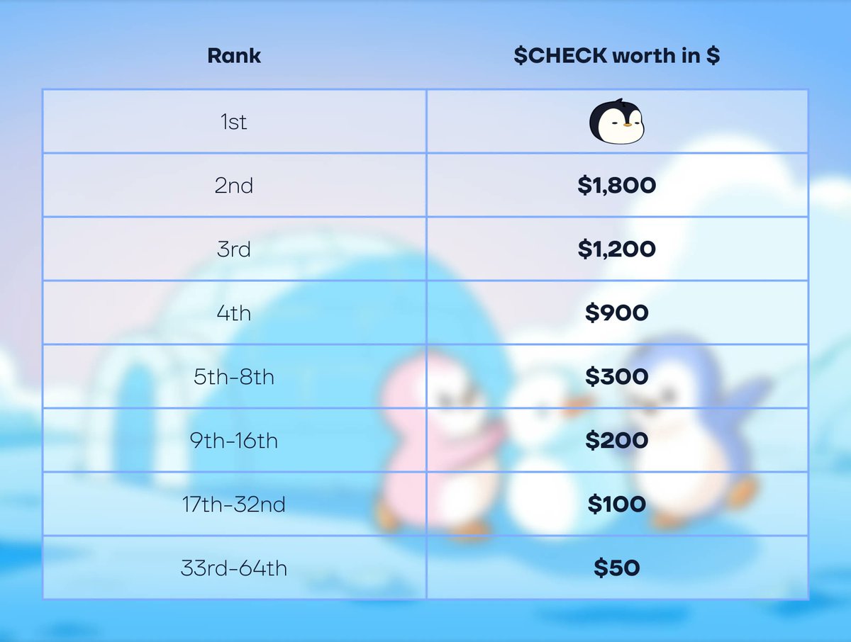 ➤ 总奖池高达 $10,000 的 $CHECK 代币