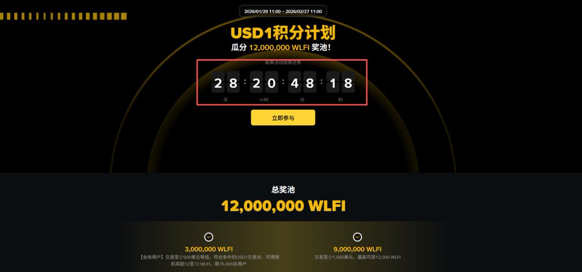 #Binance 最近给 $USD1 搞了个持币活动,就是从现在到2月20日,只要你账户里有 USD1,就能每周领 @worldlibertyfi 的 $WLFI 空投,总奖池有4000万美元。