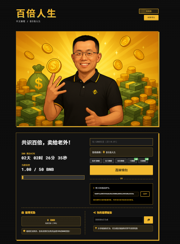 $币安人生 后又一个中文代币 $万倍人生 开启预售。