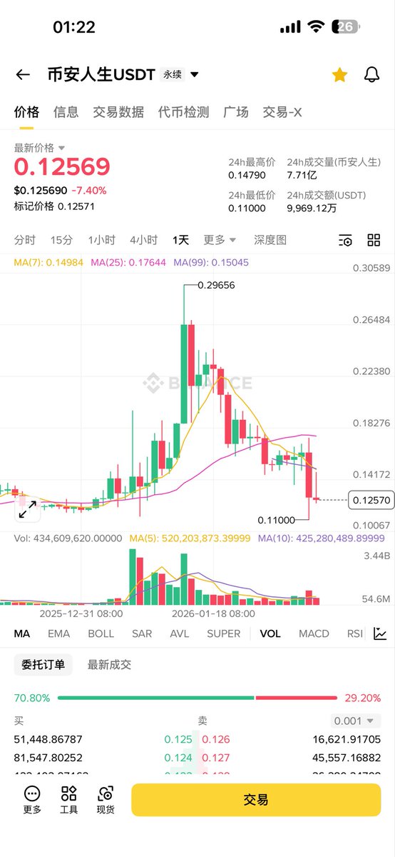 bsc这些币是没有上限空间的,没上alpha的能到20-30m已经顶天了,上alpha到50m(参考踏马),上合约可能冲一冲继续跌(参考4----20m),上现货得等它完全没热度的时候,上完继续跌或者冲一冲再跌(参考giggle---50m,tst---20m,币安人生---目前由280m跌倒170m即将跌倒100m)
