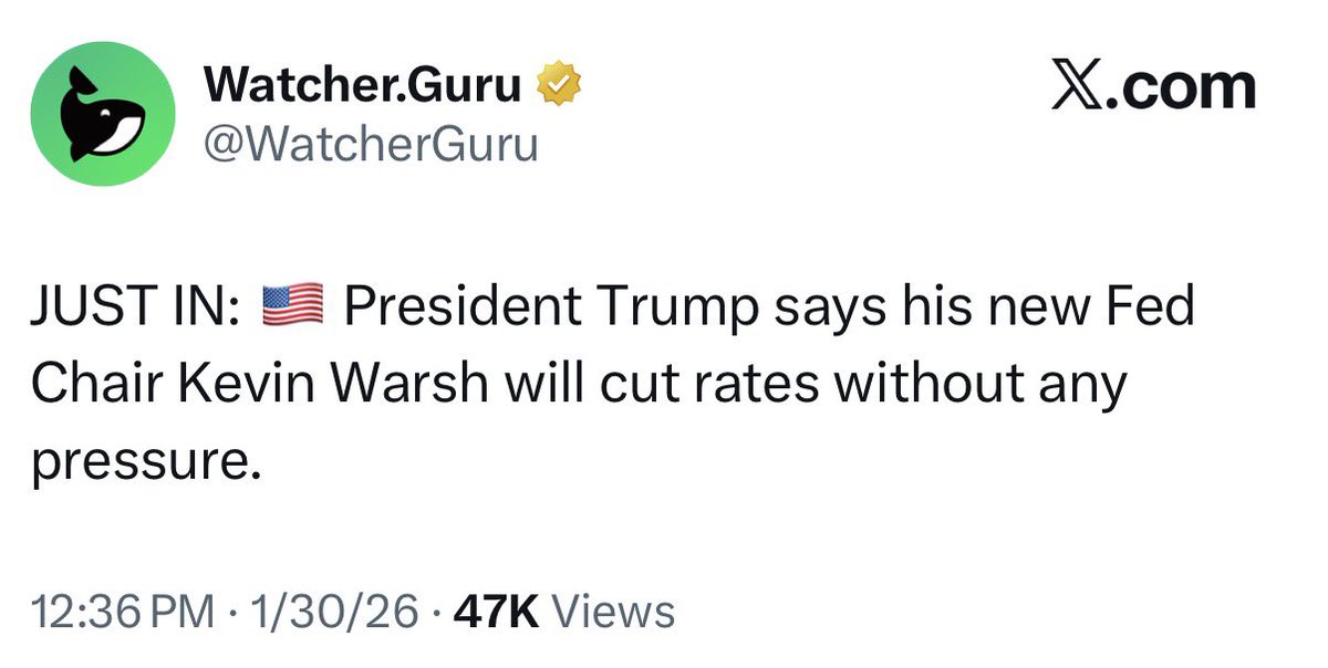 Crypto is dumping because everyone thinks Trumps new Fed chair won’t cut rates