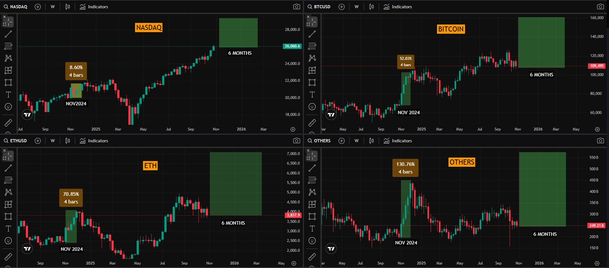 So If history rhymes, this setup could trigger another breakout from Nov 2025, with Bitcoin likely leading first, followed by ETH and then Alts , just like last cycle.