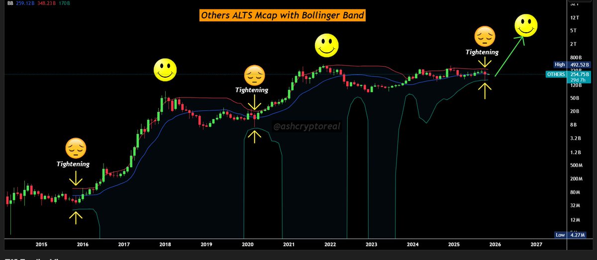 The Bollinger Bands on the Others market cap chart are tightening once again, a pattern seen before every major altseason.