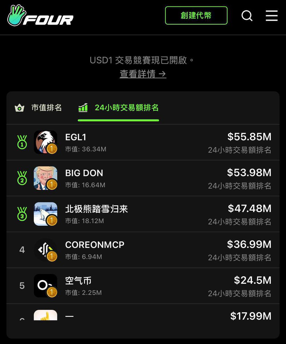 聊聊最近 USD1 交易竞赛吧,我认为叙事比较硬的是 MEMES、1 和空气币。