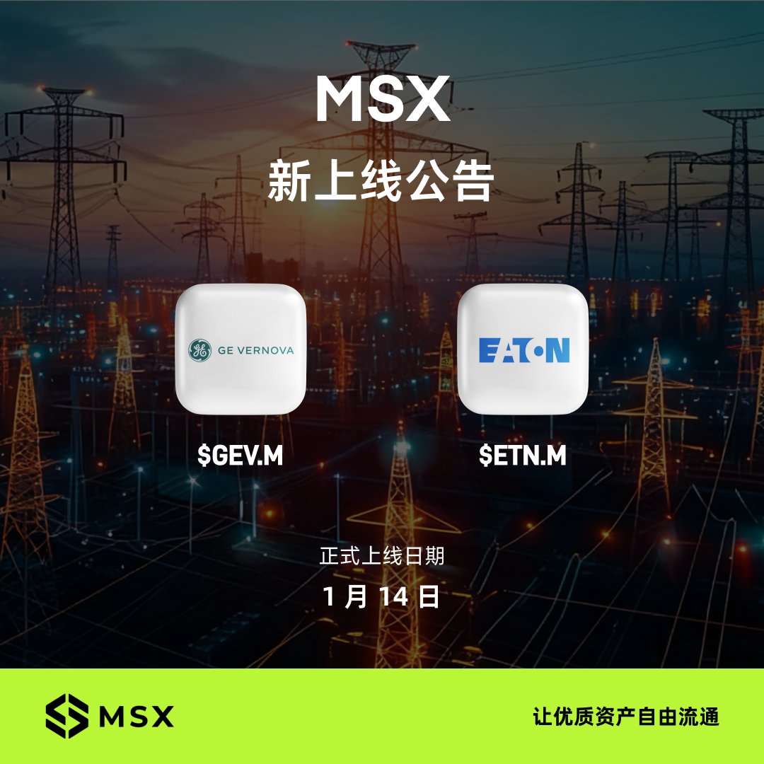 逻辑很简单,没电,你的 H100 连堆废铁都不如。MSX 昨天刚上的 $GEV.M 和 $ETN.M 两个能源股,是旧时代的收税人,正在敲开新算力时代的门。看了下技术图形,我冲了 ETN,电气化时代的隐形冠军,稳一手。