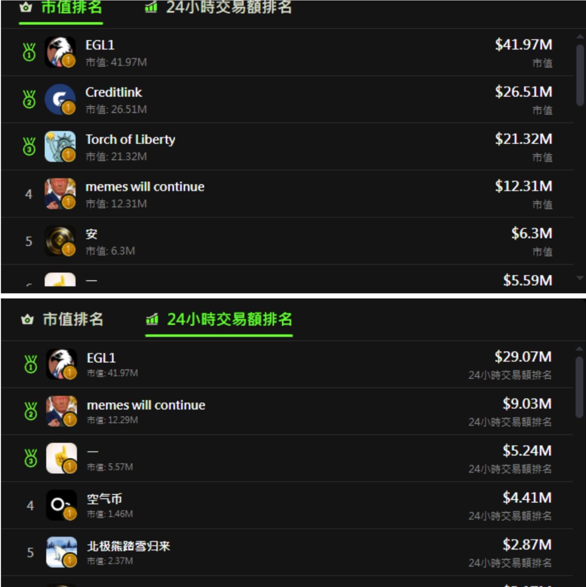 #EGL1 一直是fourmeme平台的市值和交易额榜一,持续看好持有我等个大的!