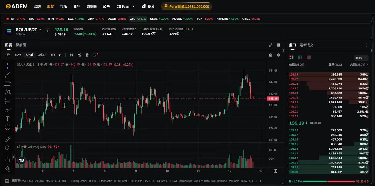 ADEN平台现已推出现货交易功能,支持USDT充值与提现,让交易更加方便。你可以直接在同一账户操作永续合约和现货,极大提升交易效率。