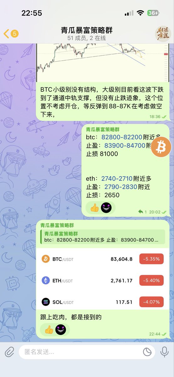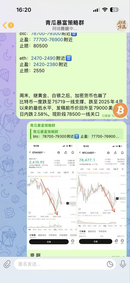 3. 所以结果是比较明确的,只是中间过程会有不少震荡和拉扯。短线来看比特币8.1万这里可能不一定会直接反弹,庄家很可能会来个假跌破测试下,如果重新收回8.1万上方,那可以考虑多一手到8.4万。记好了,只有假跌破收回才好做多,如果收不回,那就是真跌破了,就别管他了。
