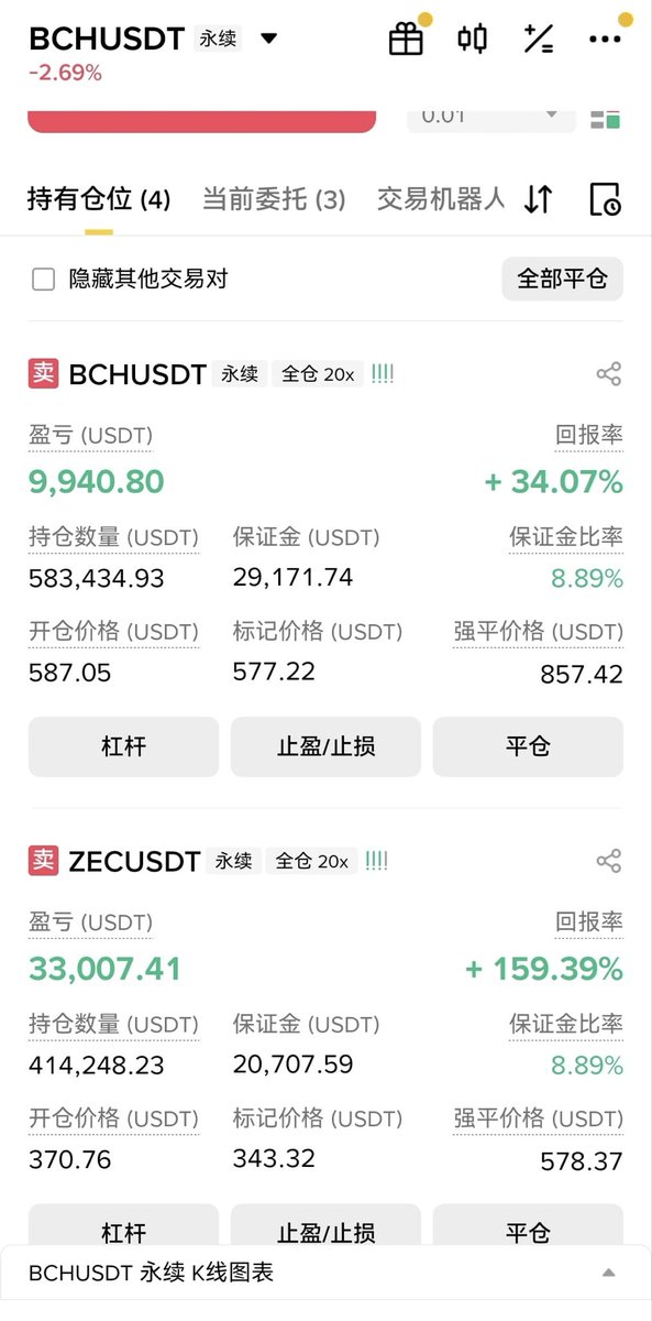 2️⃣本金亏完也只亏逐仓保证金,其他资金自动锁仓,爆仓也割不到总账户