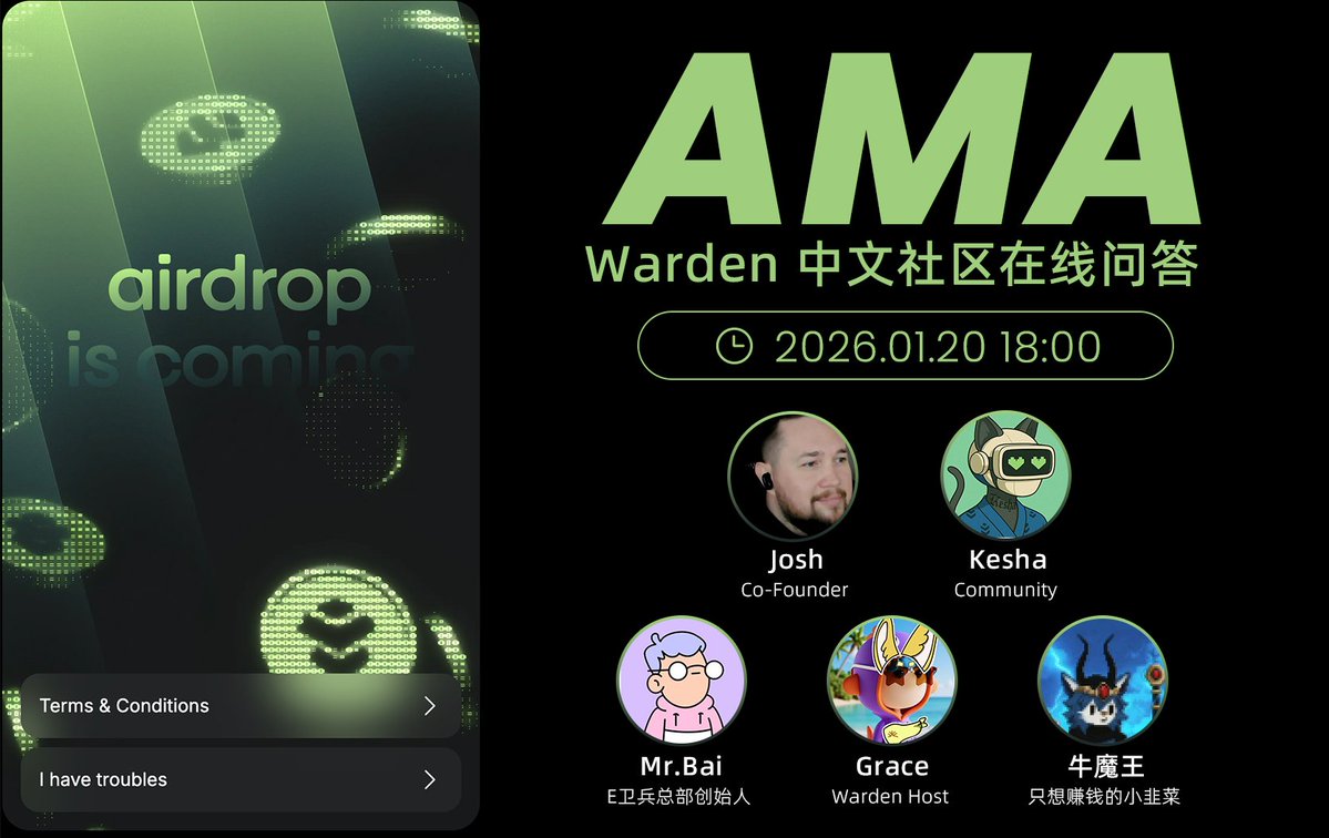 🌟 老白已经约了团队 @warden_devs @luisvae @jjheywood70 @Akash_Mishka 准备再开一次中文AMA,到时候大家有任何问题都能提问!