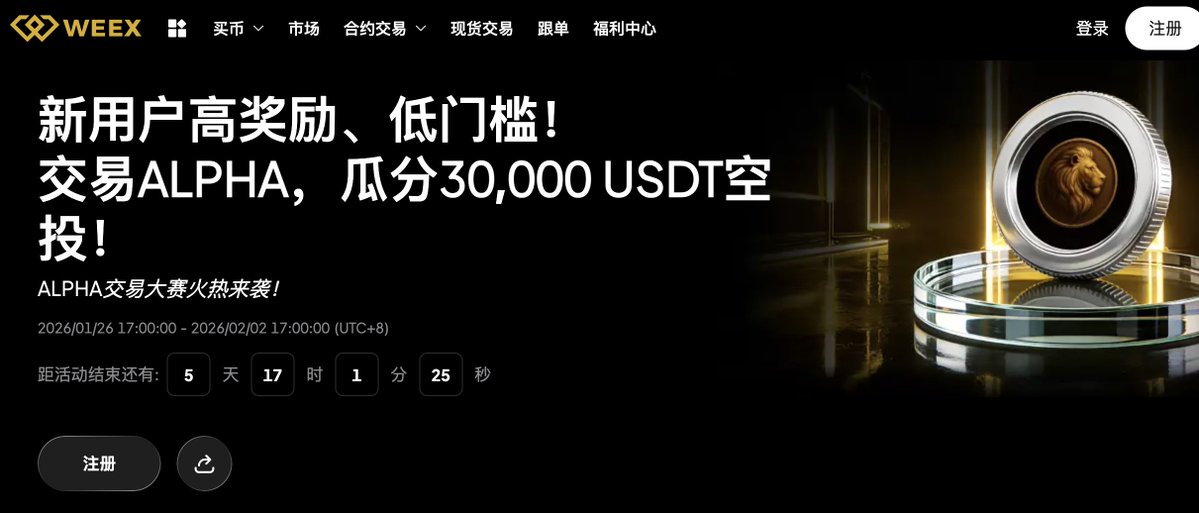 🌟 只要是新用户,参与首充 100 USDT 并在 WEEX 首次交易 $ALPHA ,直接领 $10。