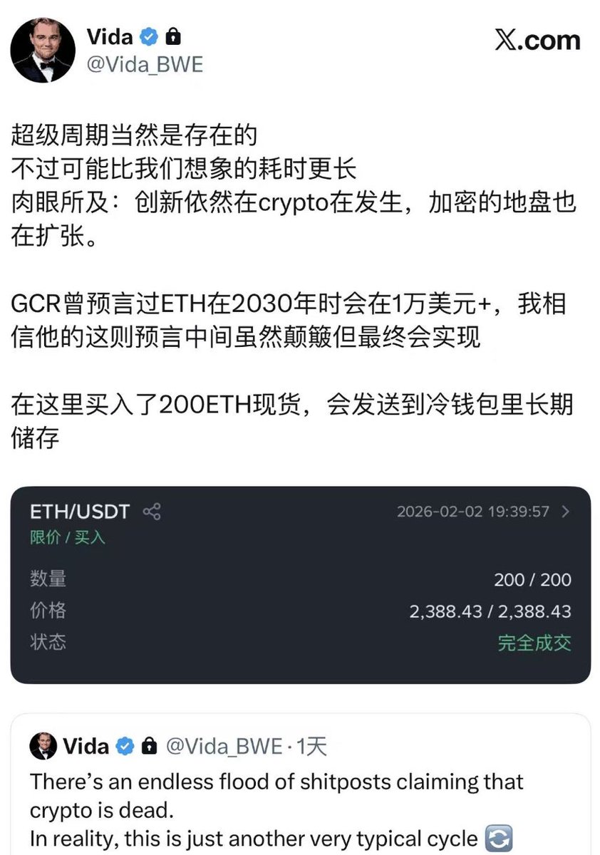 兄弟们,看到 $ETH 这么跌!老白又来充值 @ethereum 信仰了!