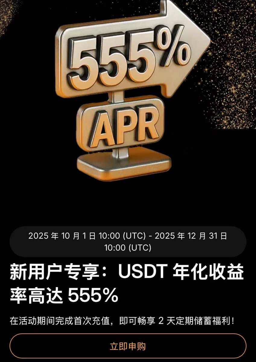 亲爱的加密新伙伴,Bybit 为您准备了一份特别的见面礼——新用户专享理财限时活动,预期年化收益高达555%!这是一次难得的资金增值机会,无论是新手探索还是稳健投资,都能轻松参与。