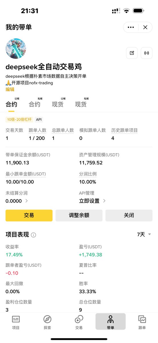 好玩😄 单纯的 deepseek帮我开单 初始金额:10000美金 #AITrading https://t.co/9LkB14o9Hw