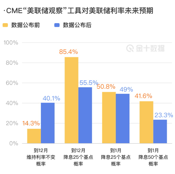 市场立马刹车——标普回落、纳指涨幅收窄,黄金、美股、比特币一起跳水。华尔街对12月降息的预期直接从98%砍到68%。
